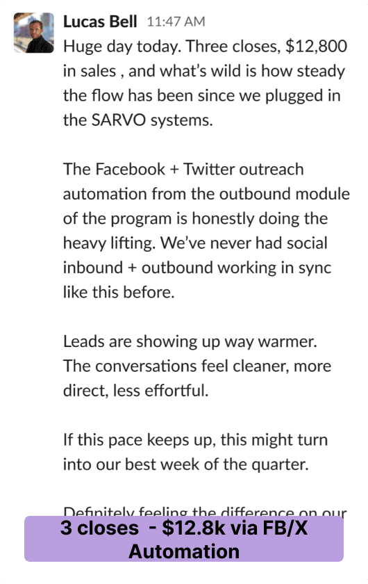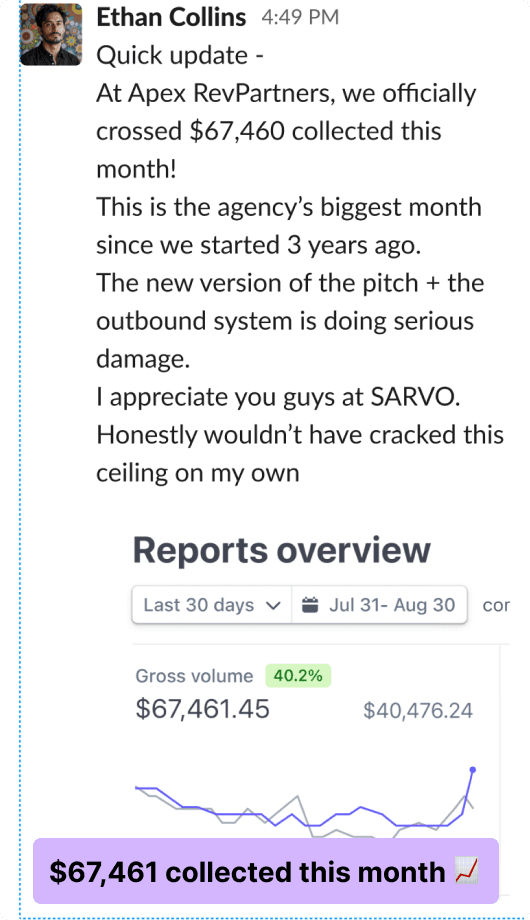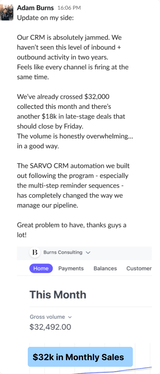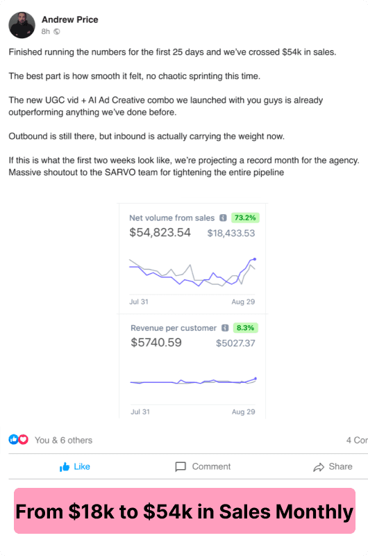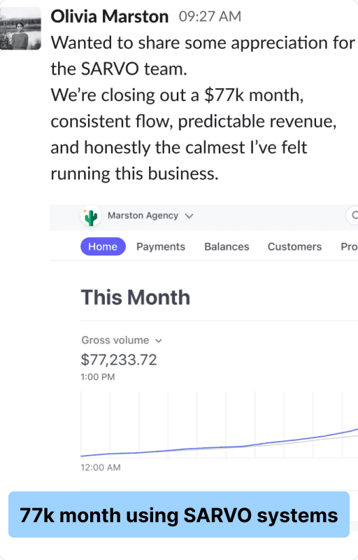 We guarantee you’ll generate at least 4× your investment in SARVO through new client revenue within 180 days - or you’ll get a Full Refund.